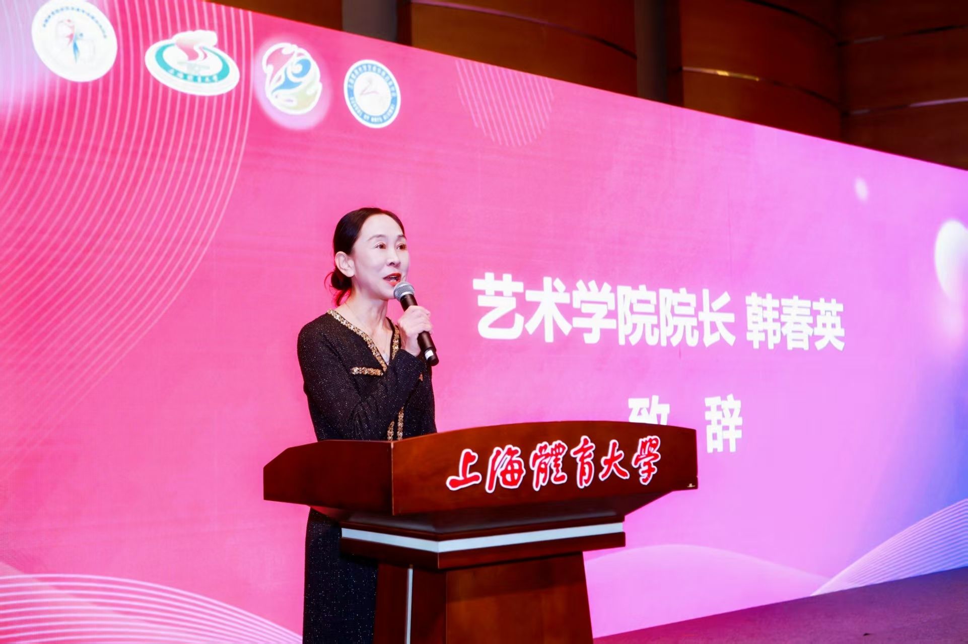 艺术学院院长韩春英在致辞中代表学院向返校校友、到场嘉宾和师生表示热烈欢迎,感谢学校长期以来对学院发展的关心与支持,她回顾了学院发展历程,介绍了近年来在人才培养、艺术实践和体艺融合方面取得的进展,肯定了校友在专业建设与艺术创新中的贡献,并对校友分会未来发展寄予殷切期望。
