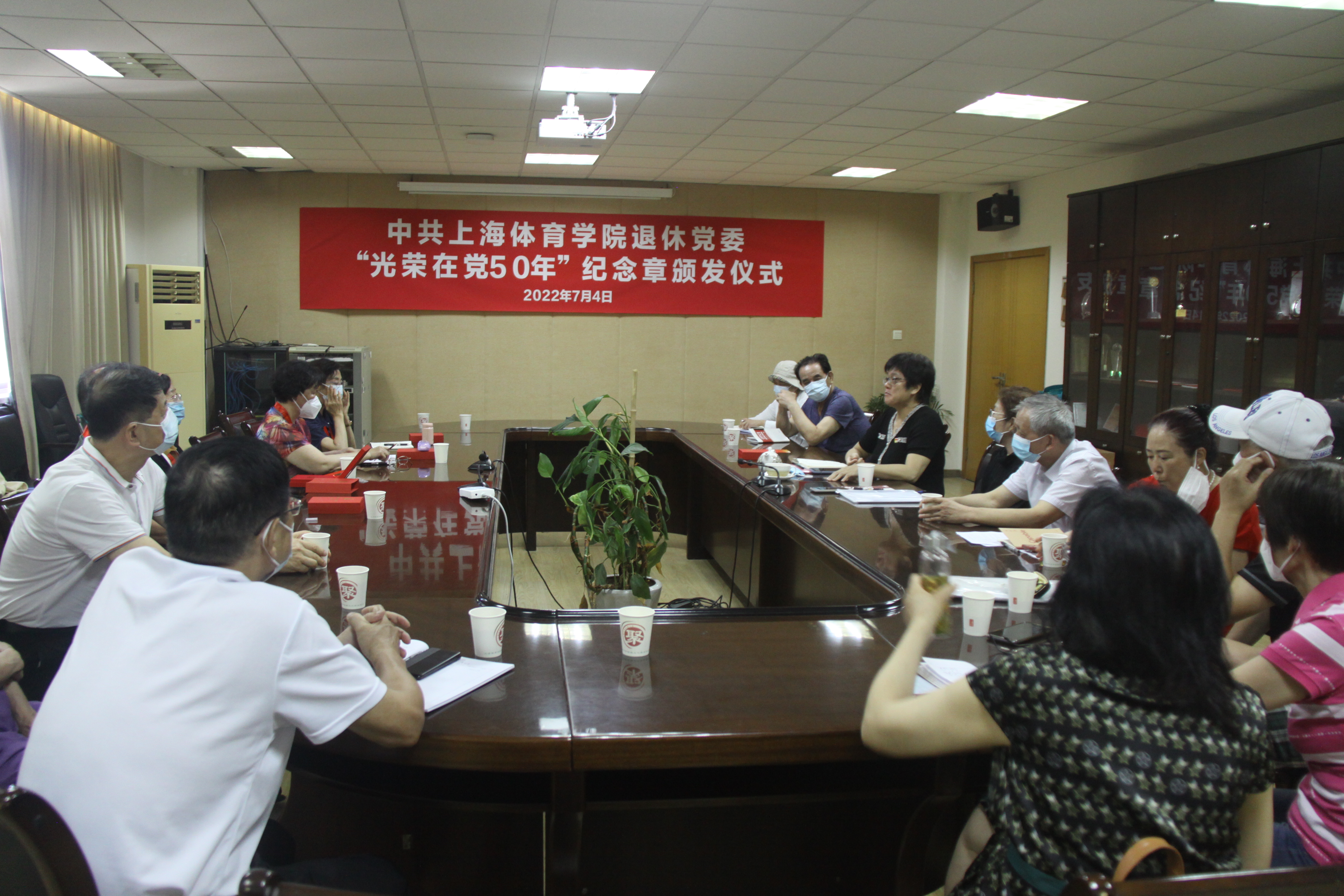 由于学校疫情防控要求,控制参会人数,退休党委全体委员、各支部书记、副书记20人参加了颁发仪式。党委委员沈志华主持会议。