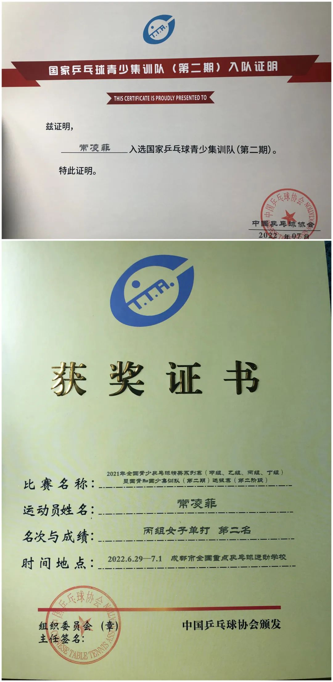 中乒院少年班女队运动员常凌菲在本次选拔赛中发挥出色,一路披荆斩棘夺得丙组第二名的好成绩,获得进入第二期国青国少集训队的名额。