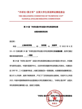 而在近日落下帷幕的第24届“外研社·国才杯”全国大学生英语辩论赛中,英语专业18级汤梁甲、19级张泽源在杨楠老师指导下,再次斩获全国一等奖的殊荣。