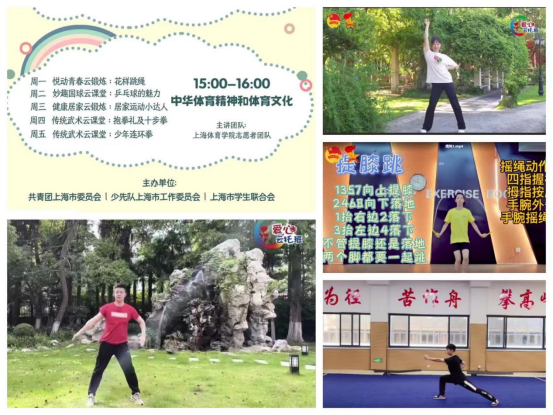 炎炎夏日中,我校师生发挥体育专业特长投身于“爱心云托班、快乐不简单”主题活动,该活动由共青团上海市委员会、上海市学生联合会共同发起的,每周一所沪上高校承接云端直播课的任务,直接面向全市处于暑假期间的中小学生。有别于往年基于高校所属区块和街道开展的线下班“爱心暑托班”,今年的云端课程覆盖面更广、主题更丰富、社会效益更强。来自我校中国乒乓球学院、体育教育学院、竞技运动学院、武术学院、花样跳绳社的同学全情投入制作了优质的线上课程,累加线上观看量5万+,同时活动还邀请到我校健美操教师杨乔博和武术学院应届毕业生张佳一纯,为“爱心云托班”全系列课程录制了每日热身操,同步在平台上滚动播放。