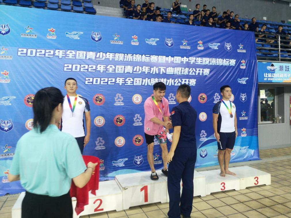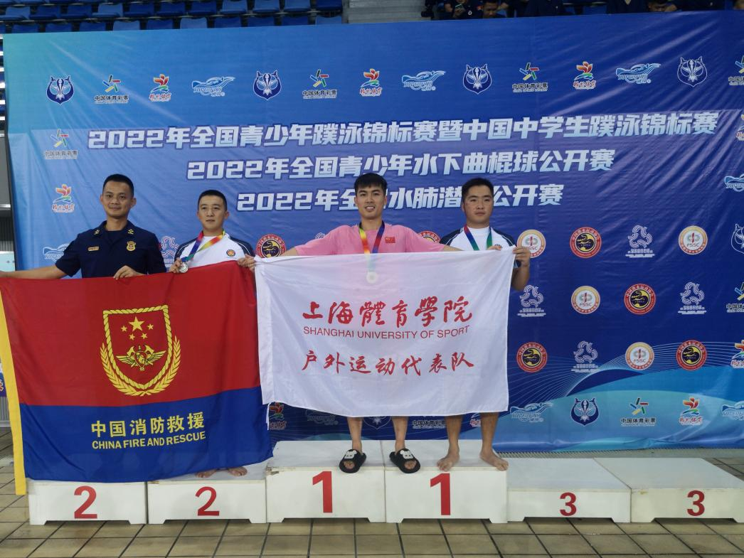 本网讯 2022年8月18日—8月21日,2022年全国水肺潜水公开赛在广西壮族自治区梧州市体育中心游泳跳水馆举行。本次比赛由国家体育总局水上运动管理中心、中国滑水潜水摩托艇运动联合会主办,吸引了国内相关高校和救援专业队伍及现役消防官兵的参与,我校体育教育学院刘东宁老师为教练,以户外运动专项班为基础,选派运动员参与比赛,体育教育学院研究生李虎以41秒85的成绩获得50米打捞比赛全国冠军。