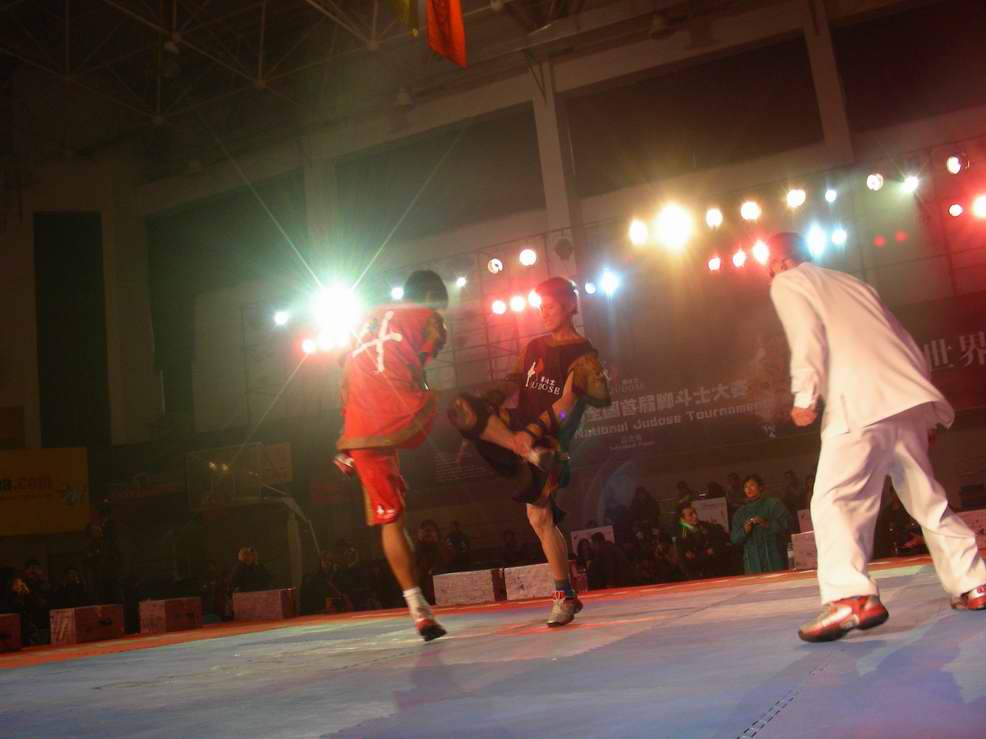 | 由国家体育总局社会体育指导中心、中央电视台体育节目中心和北京德道传媒公司联合主办的2006全国首届脚斗士大赛总决赛日前在北京中央民族大学落下帏幕。总决赛是在全国六大分赛区各个级别共上万名选手预赛的基础上选拔而产生的。 来自全国18位分赛区冠军经过循环角逐,产生各个级别的冠亚军。我院有2位学生参加了本次总决赛,社会体育专业04级学生曾平庞以全场未输的战果获得重量 级冠军,张平同学获得中量级第四名的成绩。中国奥委会副主席张发强、中央电视台体育频道总监等分别为获奖选手颁发了奖励证书。中央电视台和有关媒体进行了 相关转播和报道。