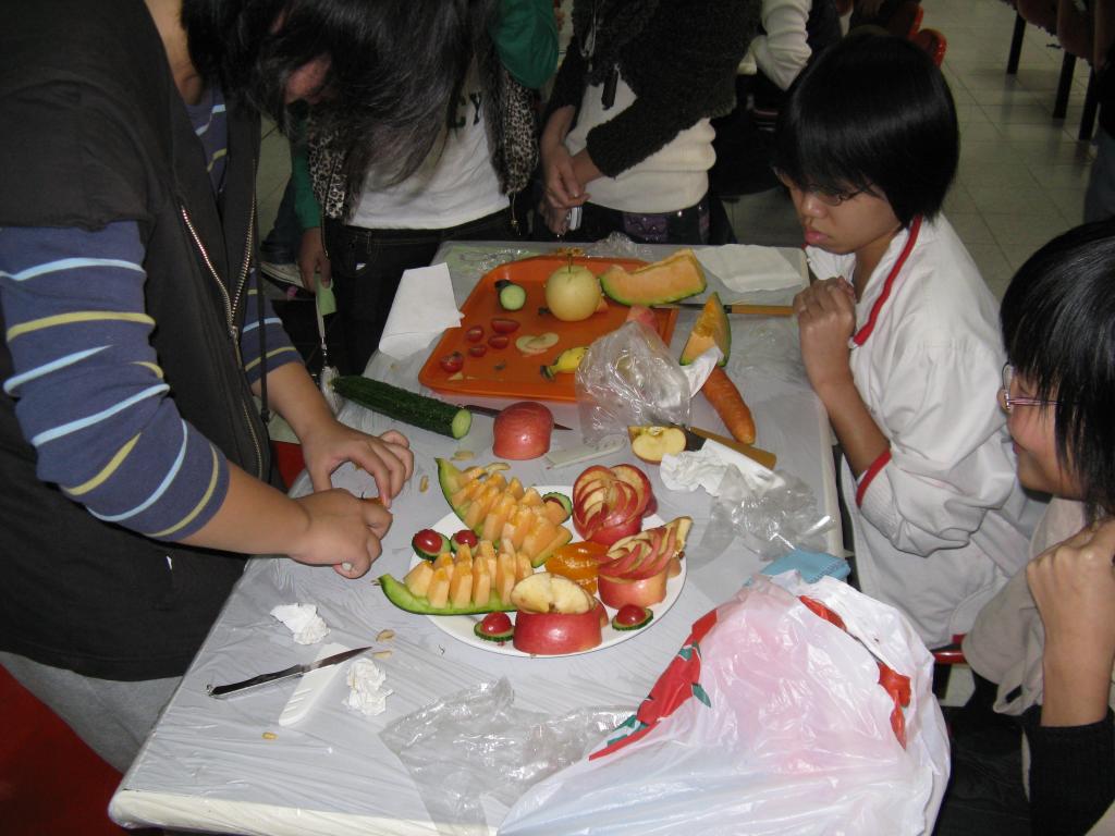 25日最后一场的创意群英会上,同学们利用几种常见的水果做出的种种隽美多姿的拼盘,我们感受到的是一场视觉的享受!大胆的创意在这里凝聚,种种琳琅的设计着实精彩,一件件作品挑动你的神经,触动你的味觉!