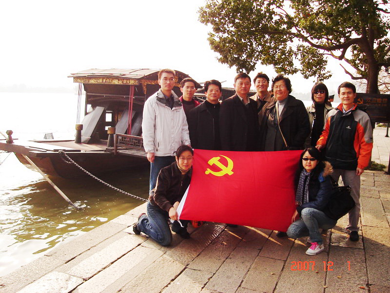 | 12月1日,在全国喜庆中国共产党十七大的胜利召开,各地掀起学习、宣传和贯彻十七大精神热潮之际,经济管理学院教工党支部赴嘉兴南湖进行了一次红色之旅,张林院长、吴家舵书记、刘兵副院长等经济管理学院领导参加了此次活动。 教工党员们先后瞻仰了革命红船,参观了南湖革命历史纪念馆,接受了一次最实际、最生动的党的革命传统教育,进一步了解了党的历史知识,从而进一步坚定了党的理想与信念,更加明确了只有中国共产党才能救中国,只有中国共产党才能发展中国的硬道理。