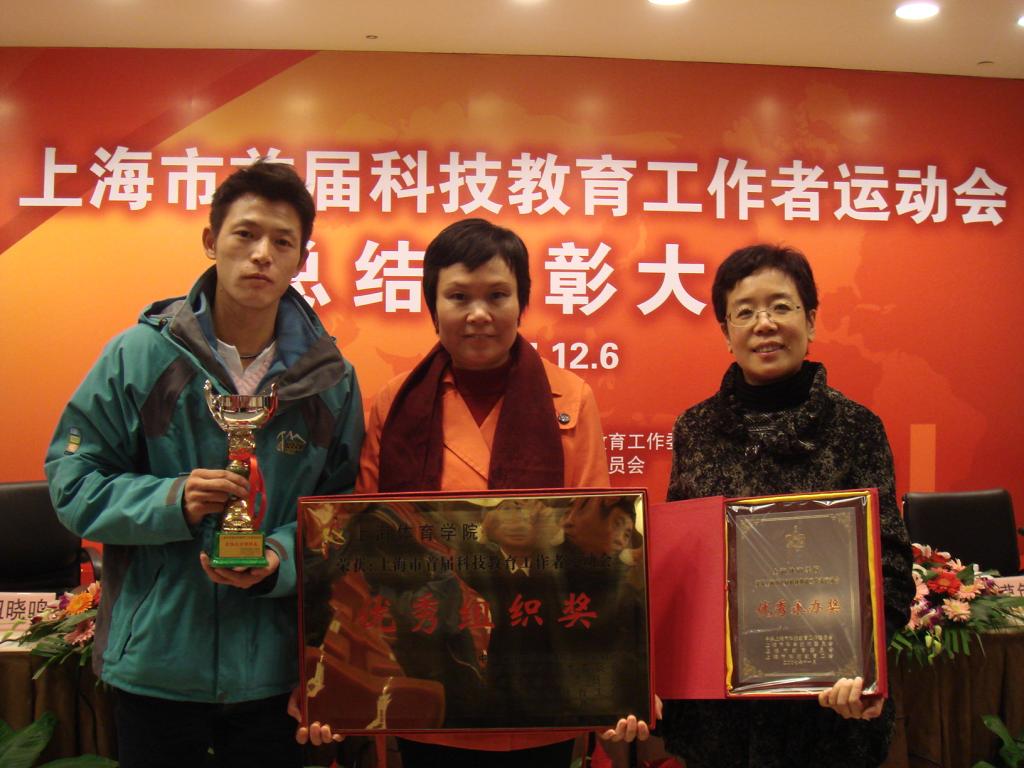 在12月6日举行的“上海市首届科教工作者运动会总结表彰会”上,我院工会获得了“优秀组织奖”、“承办奖”。健身健美操金奖、乒乓球第一名、羽毛球第三名、田径、游泳团体总分第四名、围棋第六名等,我院还获得太极拳、广播操、健身健美操优秀展示奖,在大型节目《我们在闪光》中,我院获优秀表演奖,我院的“工间操”被选入教职工体育品牌项目奖。