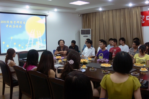 20日晚上,经管学院研究生中秋茶话会在行政楼一楼会议室召开,经管党总支书记吴家舵和研究生辅导员陈伟与同学们亲切交流。大家表示要积极融入上体大家庭,秉承严谨求实的科学精神,追求开拓创新的实践能力。在以师门为单位彼此熟悉之后,研二同学还向师弟师妹们介绍了自己过去一年的学习工作情况,并嘱咐师弟师妹要把握现在的学习机会,为以后走向工作岗位,走向社会打下坚实基础,“心存大志、明德厚学、追求卓越、迈向成功”。