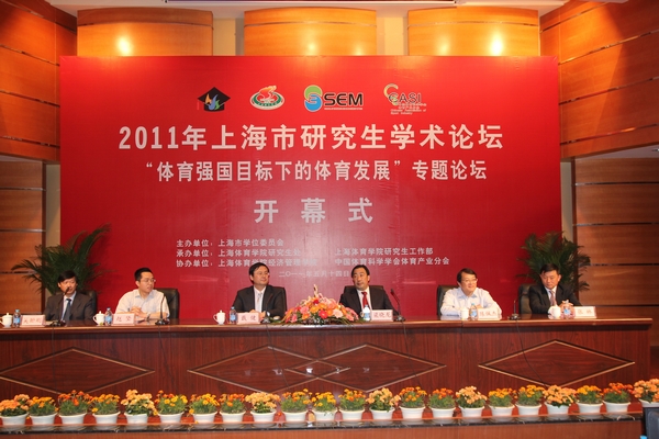 5月14日—15日, 2011年上海市研究生学术论坛“体育强国目标下的体育发展”专题论坛在我院隆重举行。本论坛由上海市学术委员会主办,上海体育学院研究生处、研究生工作部承办,经济管理学院和中国体育科学学会体育产业分会协办。