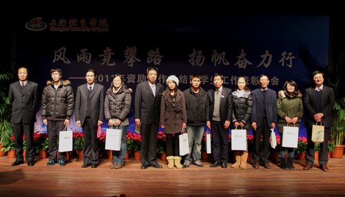 本网讯12月21日下午,我院2011年学生资助工作总结暨学生工作表彰大会在学生活动中心小剧场隆重举行。院党委书记戴健,院长章建成,党委副书记、纪委书记庄起民,党委副书记杨培刚,党委副书记、副院长陈晓峰,副院长赵光圣出席大会。