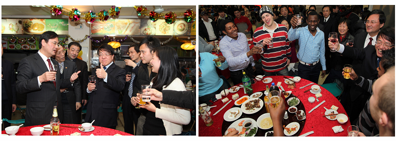 在温馨祥和的氛围中师生们一起共进年夜饭。席间,市教卫党委领导、学院和各系(院)领导纷纷向同学们送上了新春祝福。