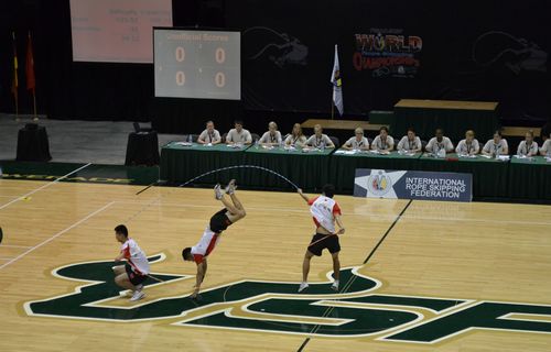 本网讯7月31至8月8日,第九届世界青年跳绳锦标赛在美国佛罗里达大学隆重举办,由我院体育休闲与艺术学院、体育教育训练学院7名选手组成的花样跳绳队代表中国参加比赛,其中,邓刘恋、刘东奥、谢长磊3人以新颖的编排、高超的技艺和完美的表演获得交互绳花样赛亚军。