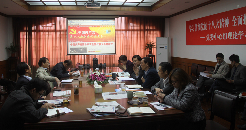 本网讯11月8日上午9点,中国共产党第十八次全国代表大会在北京人民大会堂隆重举行。胡锦涛向大会作题为《坚定不移沿着中国特色社会主义道路前进 为全面建成小康社会而奋斗》的报告。我院党委中心组组织理论学习(扩大)会,收看十八大开幕式,并座谈收听收看体会。党委书记戴健,院长章建成,党委副书记、副院长陈晓峰,党委副书记、纪委书记詹萌,副院长陈佩杰、平杰、赵光圣出席学习会。党委中心组成员和扩大会议成员参加会议。