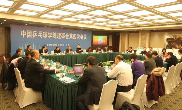 理事会第四次会议增补了中国乒乓球学院直属党支部书记、副院长李汶凯为理事,听取了执行理事长章建成关于中国乒乓球学院2012年工作总结和2013年重点工作计划,中国乒乓球学院常务副院长张辉关于欧洲考察报告和副院长李汶凯关于国家队运动员学历教育现状与建议报告。审议了中国乒乓球学院院长推荐人选,一致推荐国家乒乓球女队主教练施之皓担任中国乒乓球学院院长,审议了中国乒乓球学院校徽设计方案及中国乒乓球博物馆方案。