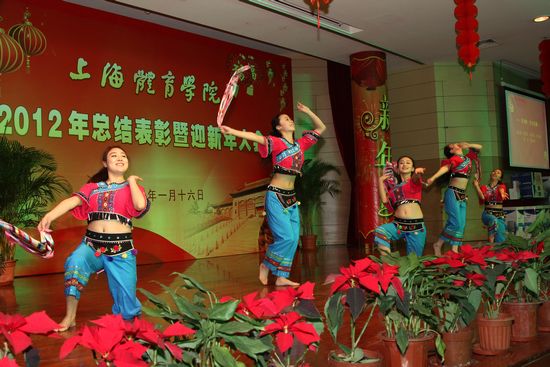 本网讯1月16日下午,上海体育学院2012年总结表彰暨迎新年大会在绿瓦大礼堂隆重举行。党委书记戴健发表新年贺词,院长章建成作2012年学院工作总结报告。院领导陈晓峰、詹萌、王玉林、陈佩杰、平杰、赵光圣,以及老同志代表马如棠、胡爱本、俞继英、蔡龙云、虞重干等出席大会,并于全院教职工一起观看了迎新年节目演出。