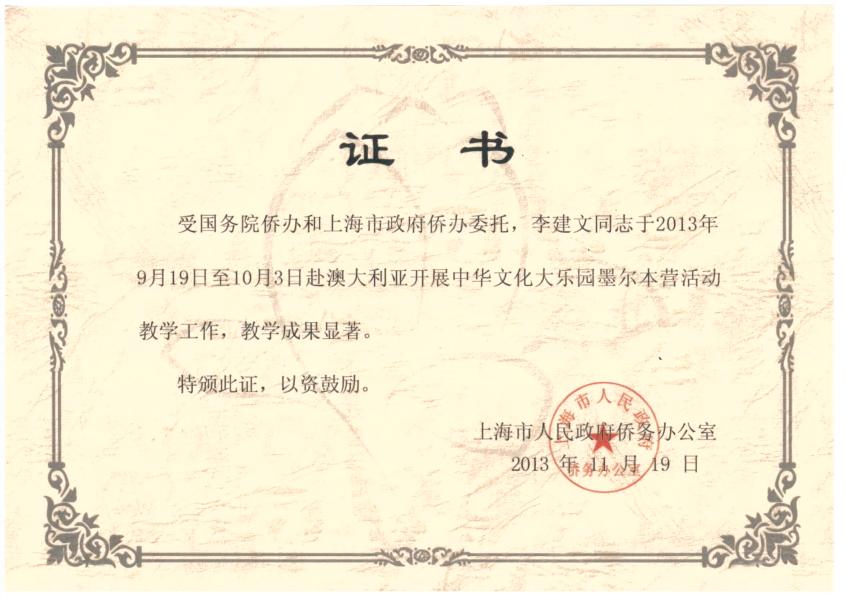 本网讯日前,上海市人民政府侨务办公室来函感谢我校武术学院李建文老师在澳大利亚墨尔本开展的中华文化传播之旅中的优异表现。