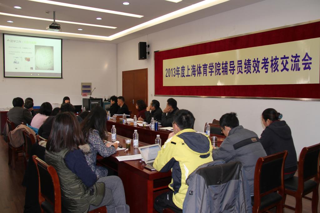 本网讯 12月18日上午,我校2013年度辅导员绩效考核交流会在学生活动中心二楼会议室举行,24位辅导员分别进行了特色工作介绍。学生工作指导委员会成员在认真听取介绍的基础上结合辅导员工作手册、工作总结以及日常工作开展情况对辅导员进行了评分。