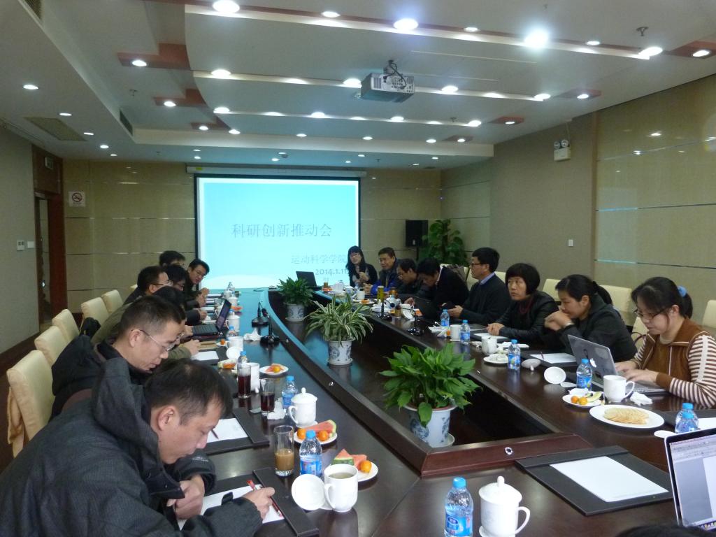 本网讯 2013年度我校创纪录的获得6项国家自然科学基金,排名全国体育院校之首。为继续保持科研工作发展的良好势头,更好地交流基金申请的经验心得,调动青年教师的科研热情。1月11日下午,运动科学学院召开“科研创新推动”研讨会,上海体育学院院长陈佩杰、科研处处长周成林出席了此次会议,运科学院领导班子及中青年教师共20人参加了会议。