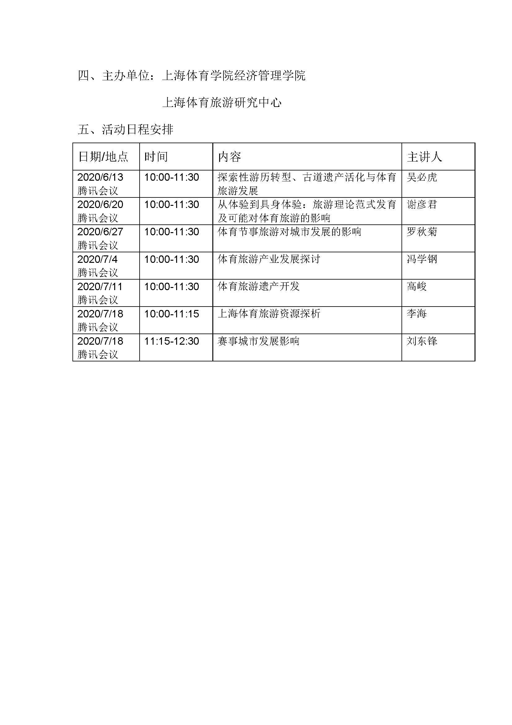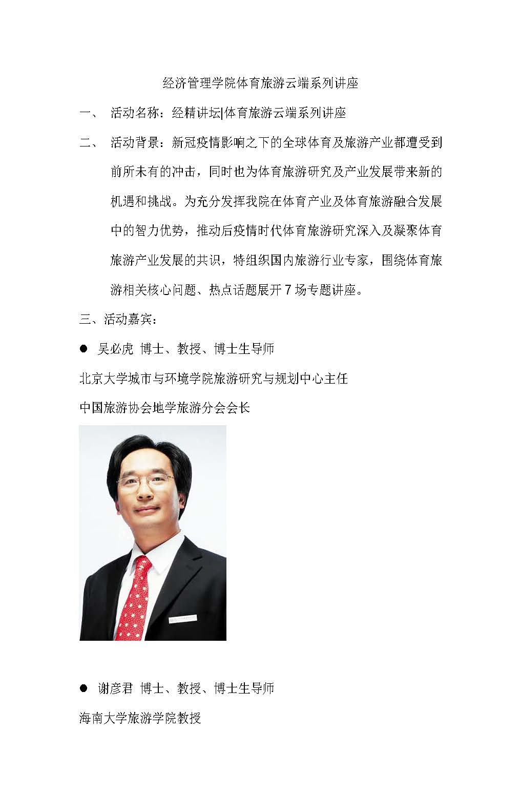经济管理学院体育旅游云端系列讲座