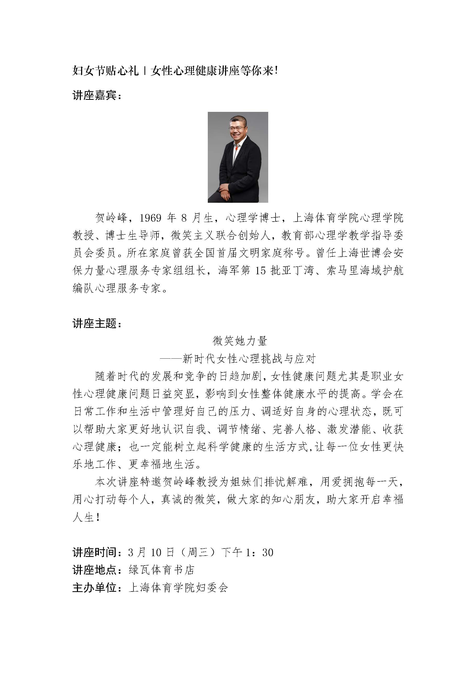 妇女节女性心理健康讲座——微笑她力量
