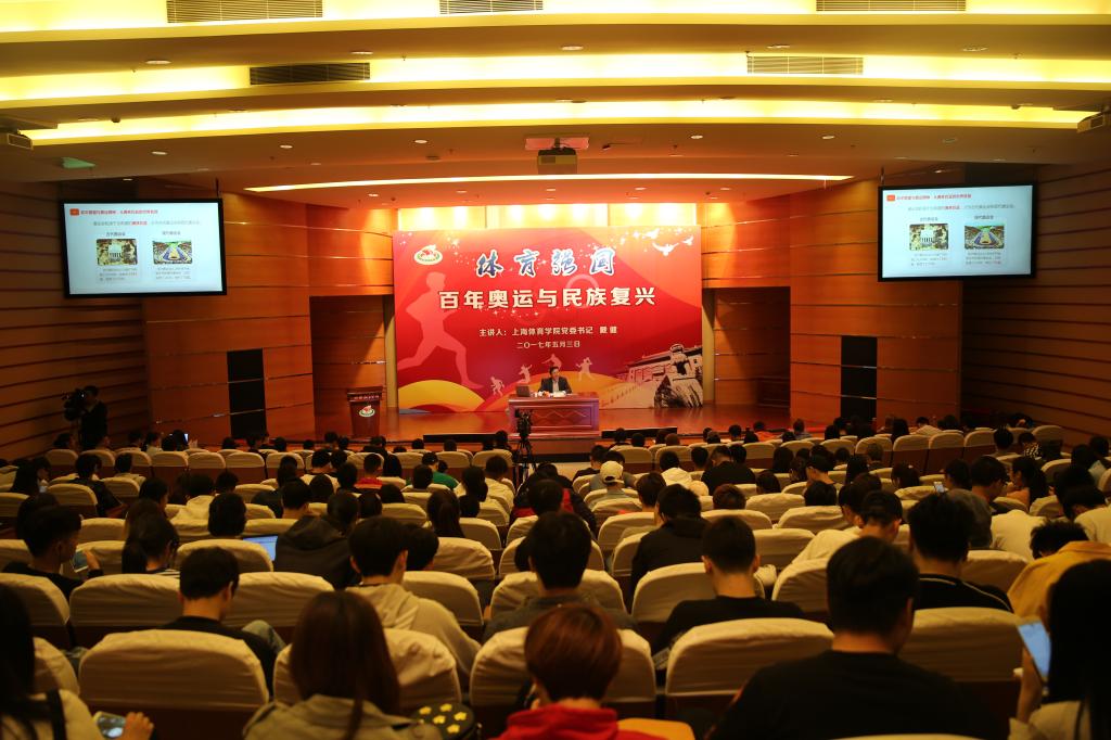 本网讯 5月3日下午,上海体育学院“体育强国”系列课程第一讲在图文信息楼报告厅开讲,党委书记戴健教授主讲“百年奥运与民族复兴”。来自全校300余名学生,部分思政课教师、辅导员和党政工作者聆听了课程。